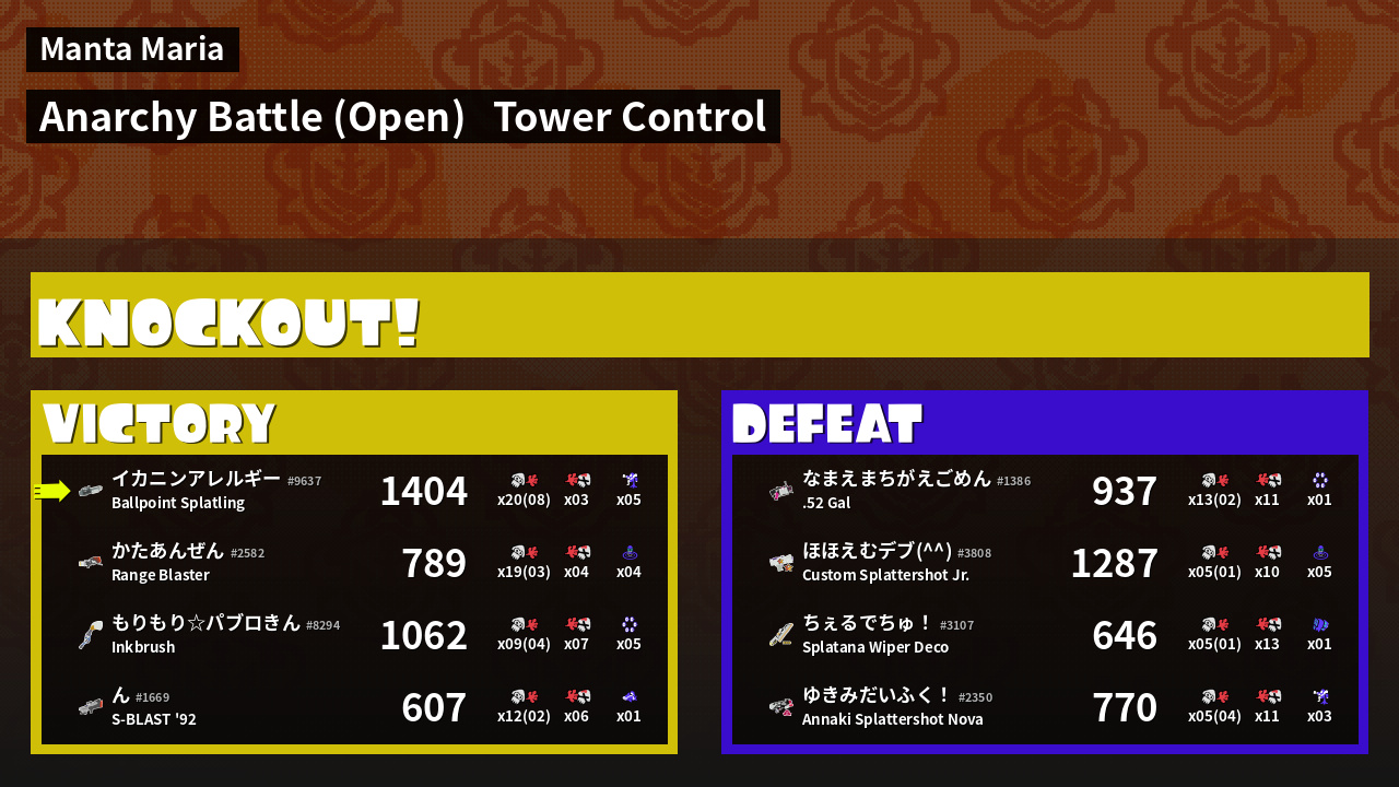 Name | Weapon | Inked | ![]() |