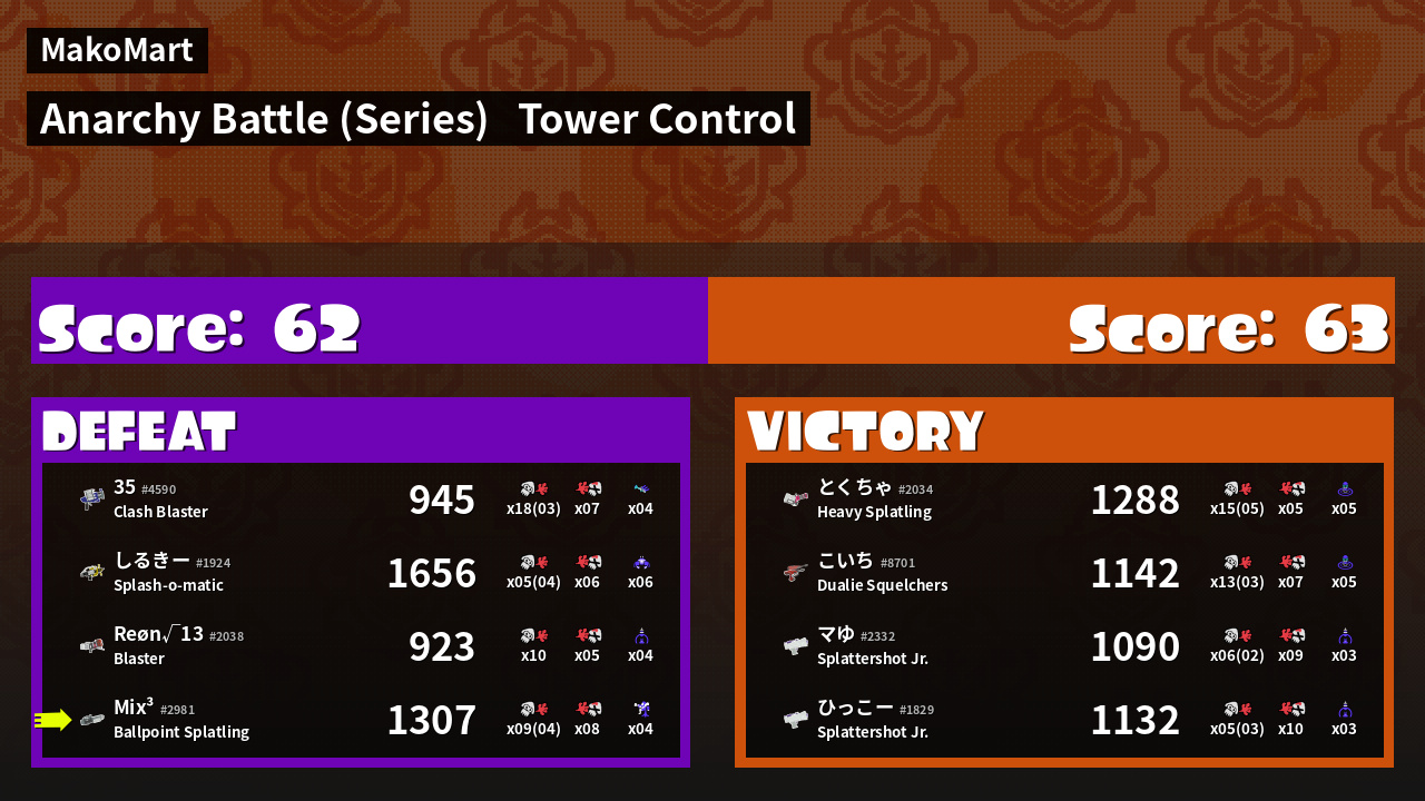 | Medals |   #1 Score Booster  #1 Splat Assister  #1 Checkpoint Breaker | ||