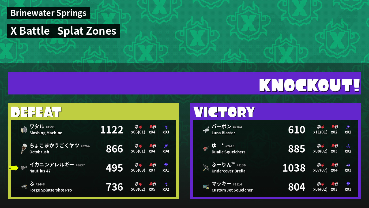 | Medals | #1 Splat Zone Guard #1 Splat Assister First Splat! | ||
