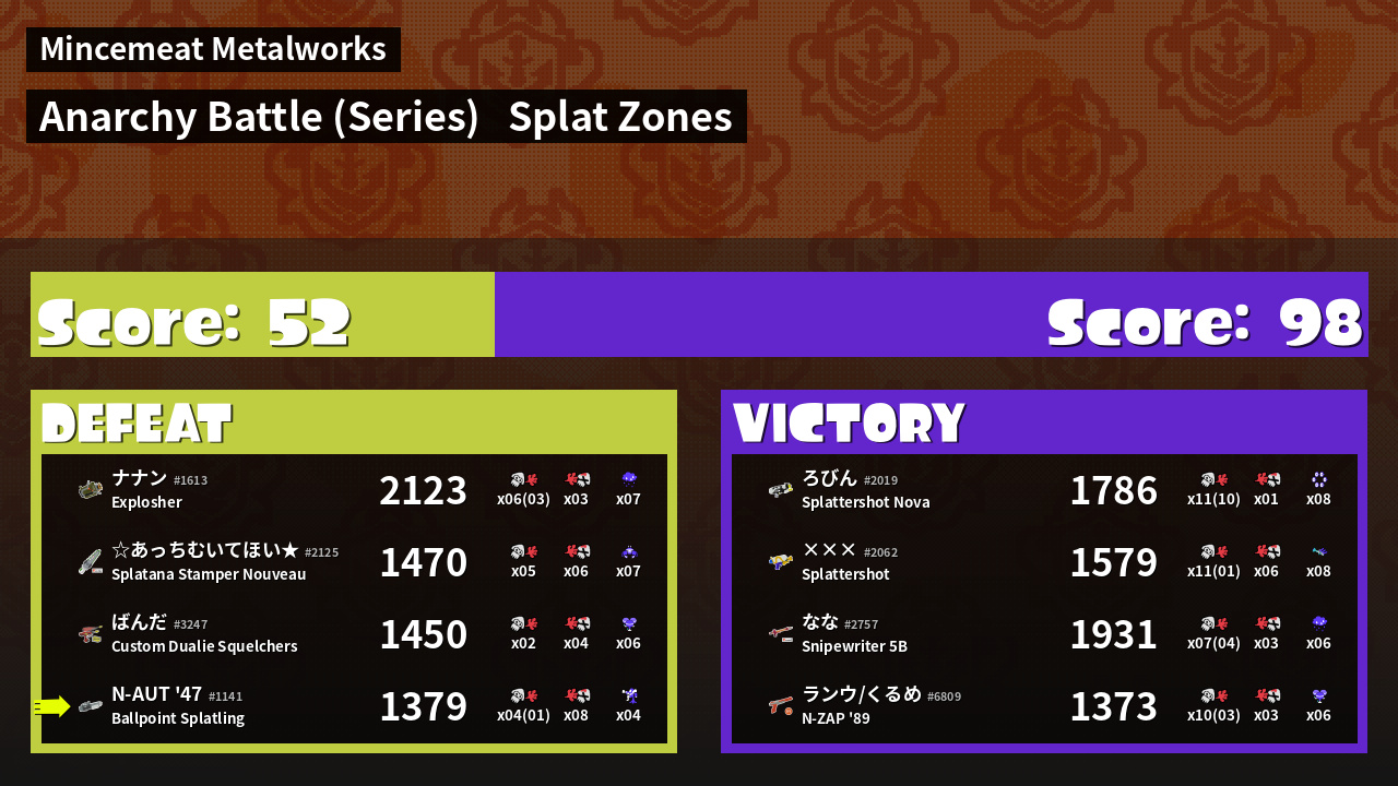 Name | Weapon | Inked | ![]() |