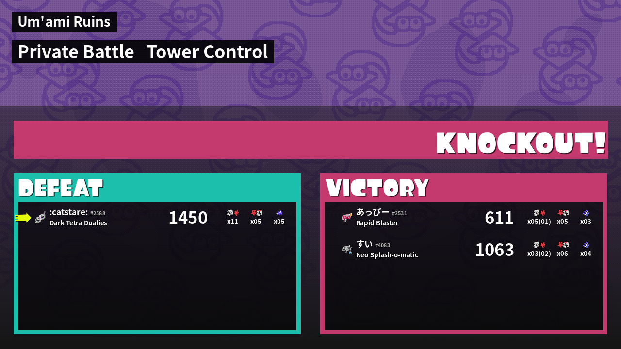 Kills / Deaths | 11 + 0 / 5 > Kill Ratio: 2.20 | ||