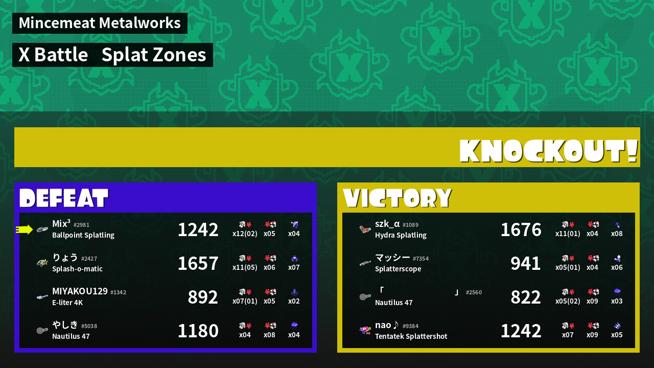 Kills / Deaths | 10 + 2 / 5 > Kill Ratio: 2.00 | ||
