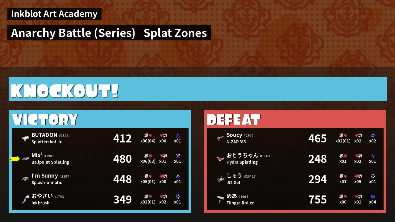 | Mode | Splat Zones - Anarchy Battle (Series) | ||