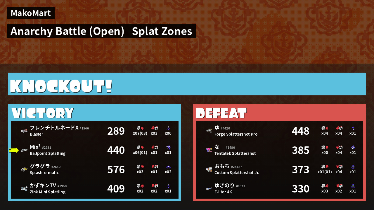| Mode | Splat Zones - Anarchy Battle (Open) | ||