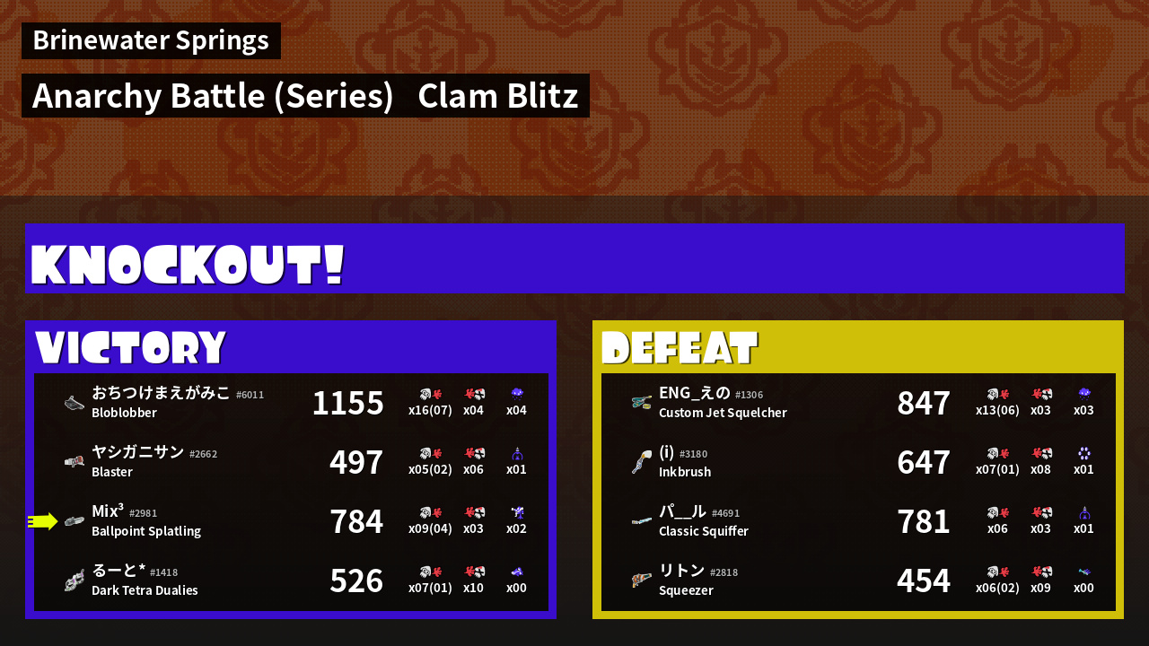 Name | Weapon | Inked | ![]() |