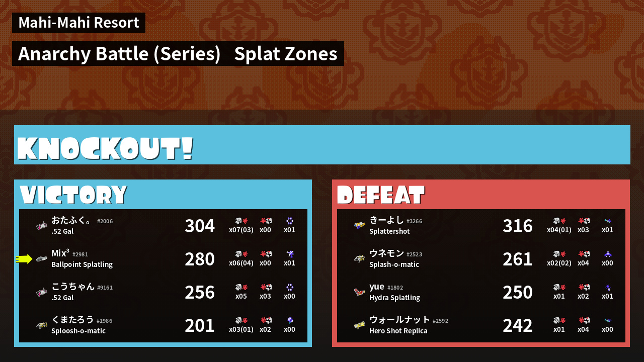 Name | Weapon | Inked | ![]() |