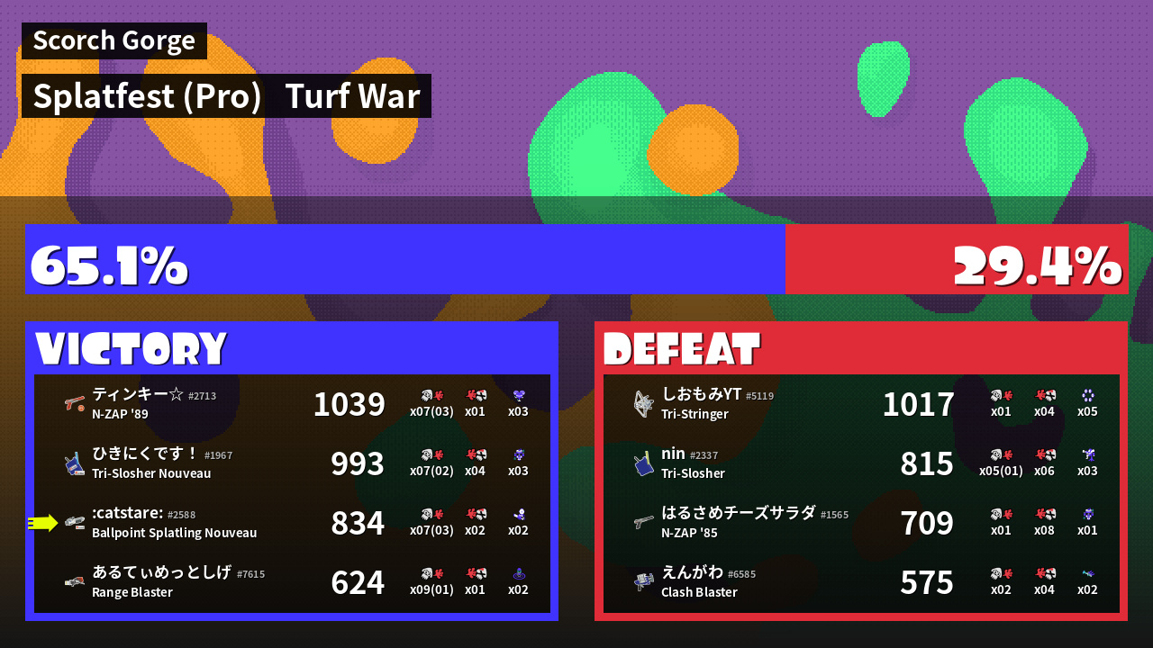 | Mode | Turf War - Splatfest (Pro) | ||