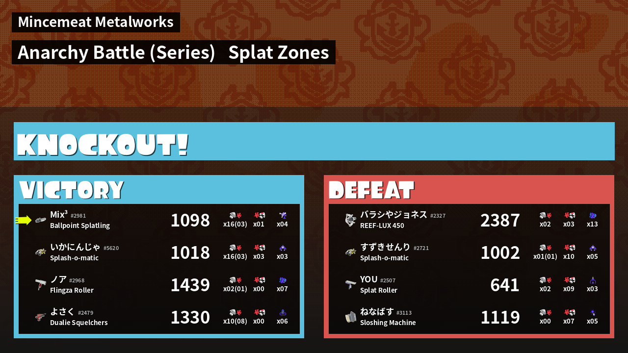 | Mode | Splat Zones - Anarchy Battle (Series) | ||