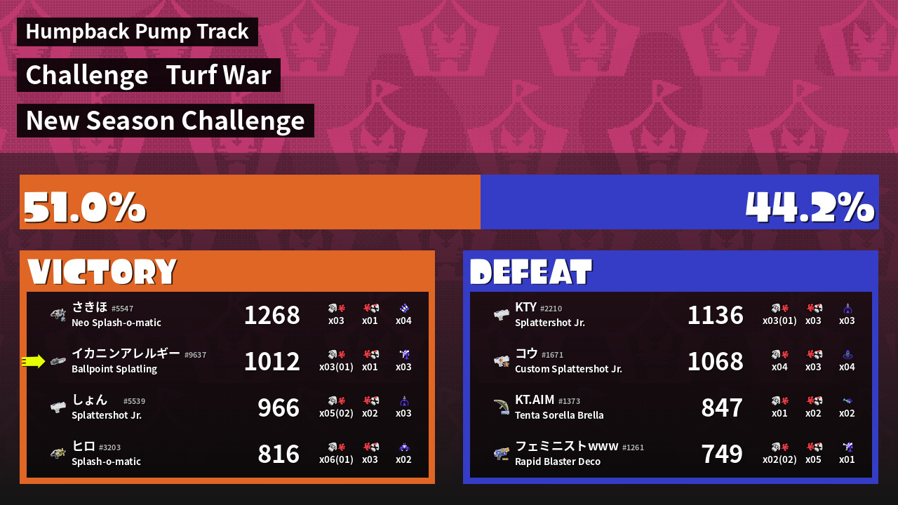 | Medals | #1 Enemy-Base Inker #1 Super Jump Spot First Splat! | ||