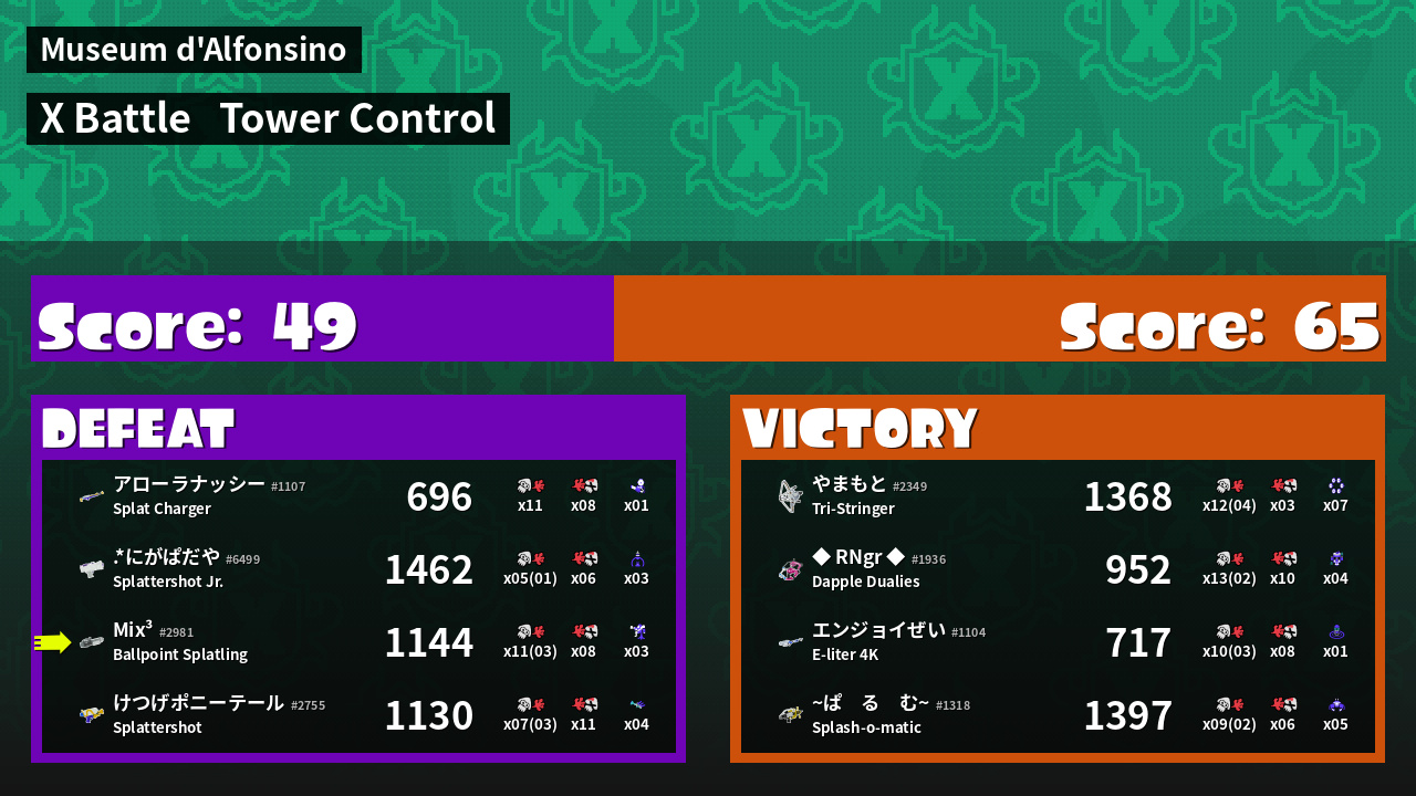 | Mode | Tower Control - X Battle | ||