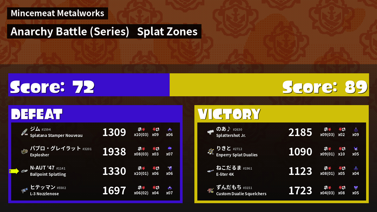 Name | Weapon | Inked | ![]() |