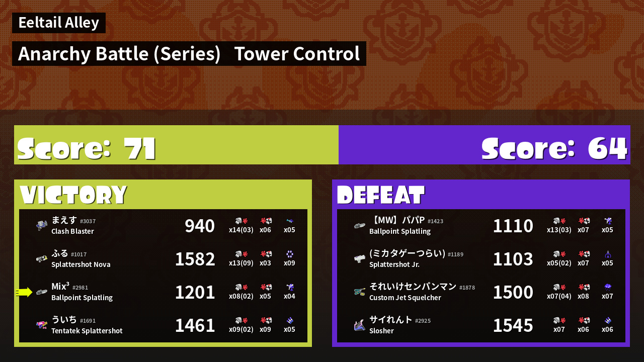 Kills / Deaths | 6 + 2 / 5 > Kill Ratio: 1.20 | ||