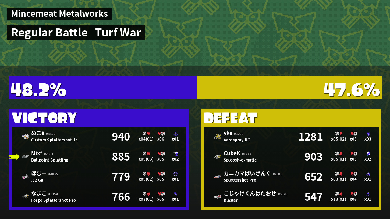 Kills / Deaths | 6 + 3 / 5 > Kill Ratio: 1.20 | ||