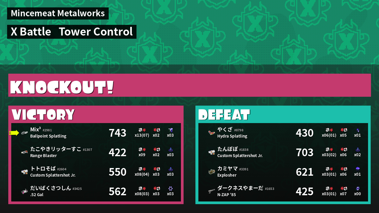 Kills / Deaths | 6 + 7 / 2 > Kill Ratio: 3.00 | ||