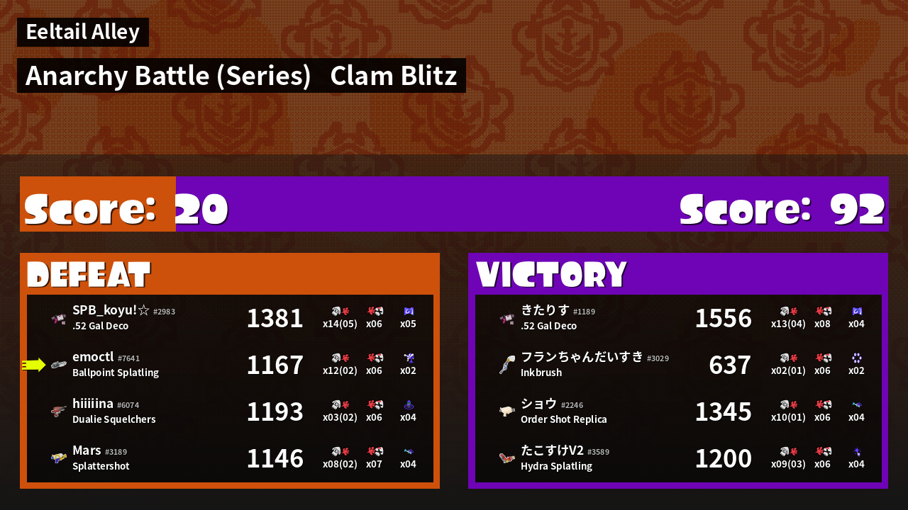 Name | Weapon | Inked | ![]() |