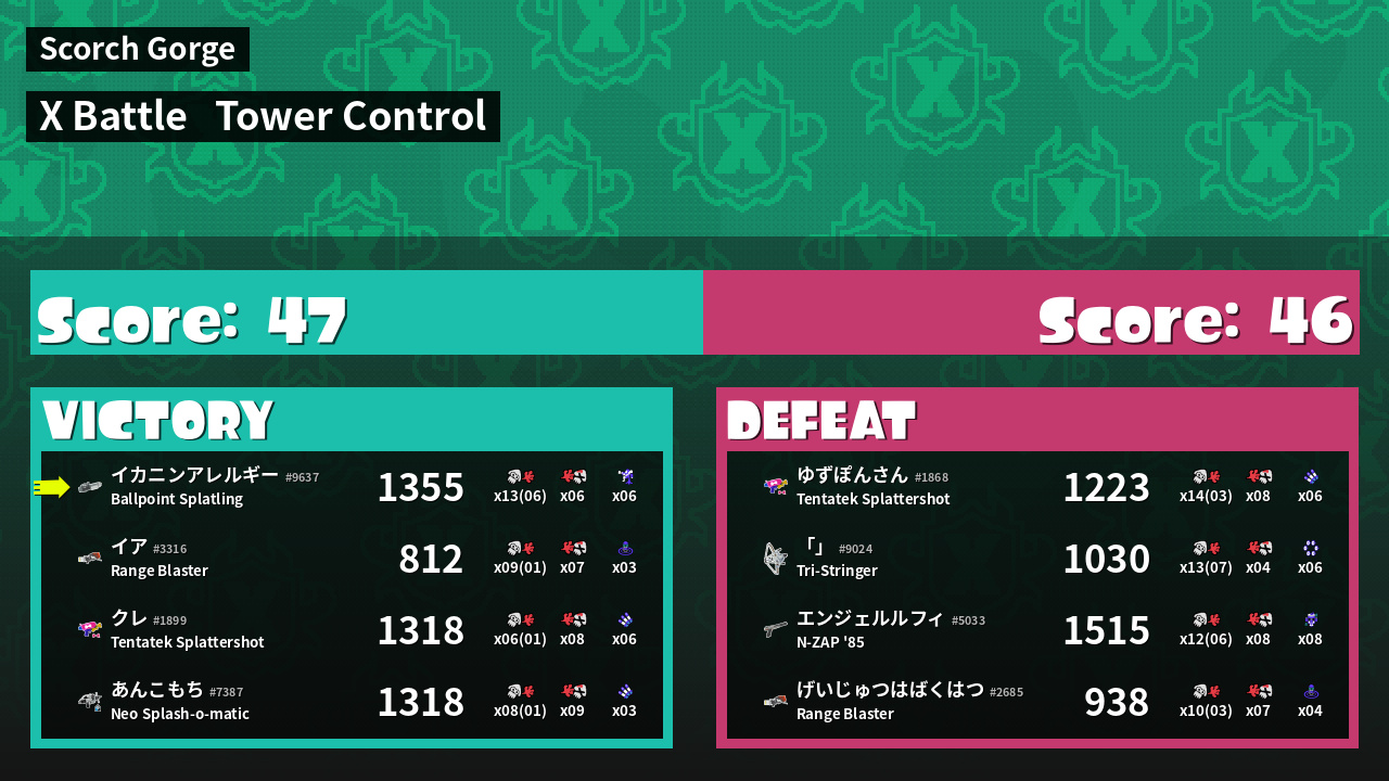 | Mode | Tower Control - X Battle | ||