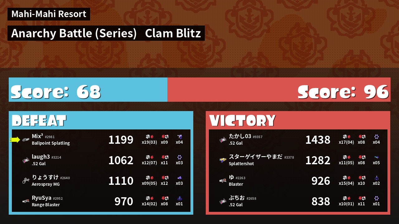 Kills / Deaths | 16 + 3 / 9 > Kill Ratio: 1.78 | ||