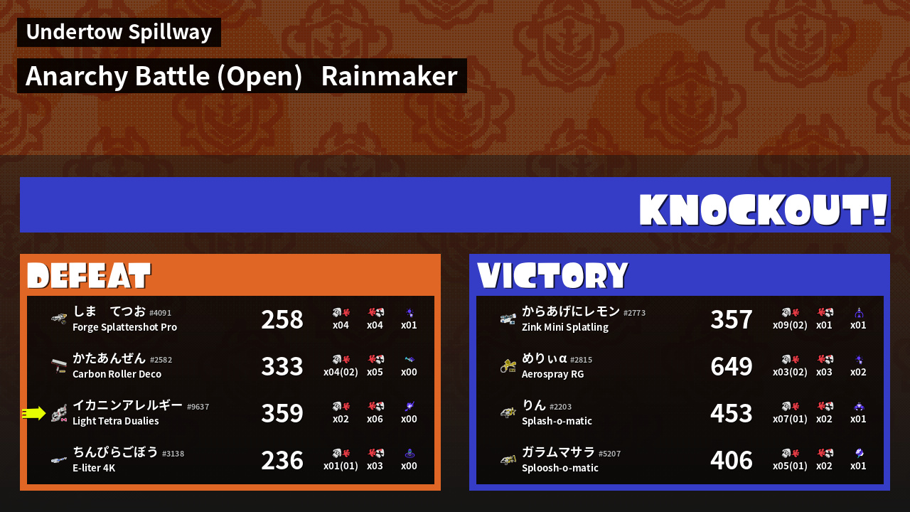 | Medals | #1 Turf Inker #1 Damage Taker #2 Enemy Splatter | ||
