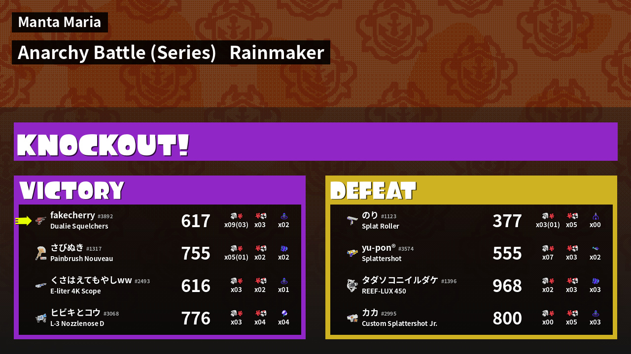 Kills / Deaths | 6 + 3 / 3 > Kill Ratio: 2.00 | ||