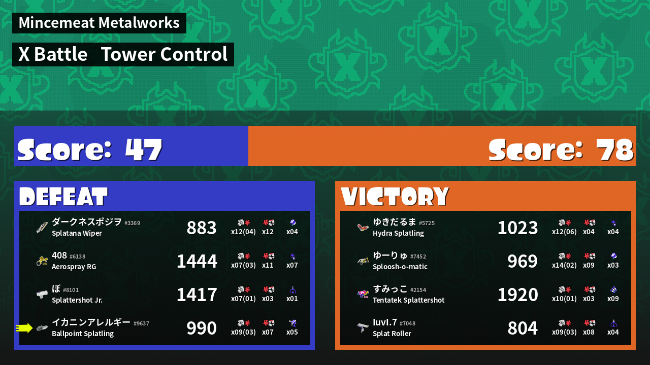| Medals | #1 Tower Stopper #1 Damage Taker #1 Inkjet User | ||