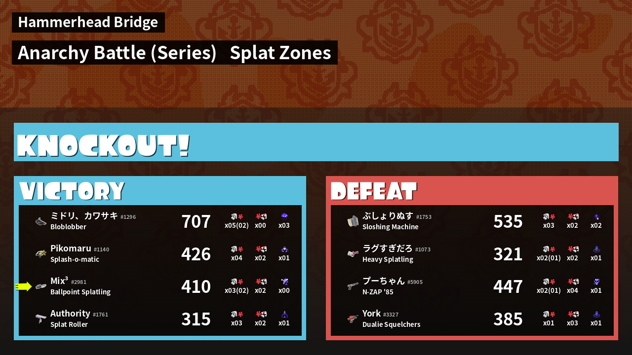 | Mode | Splat Zones - Anarchy Battle (Series) | ||