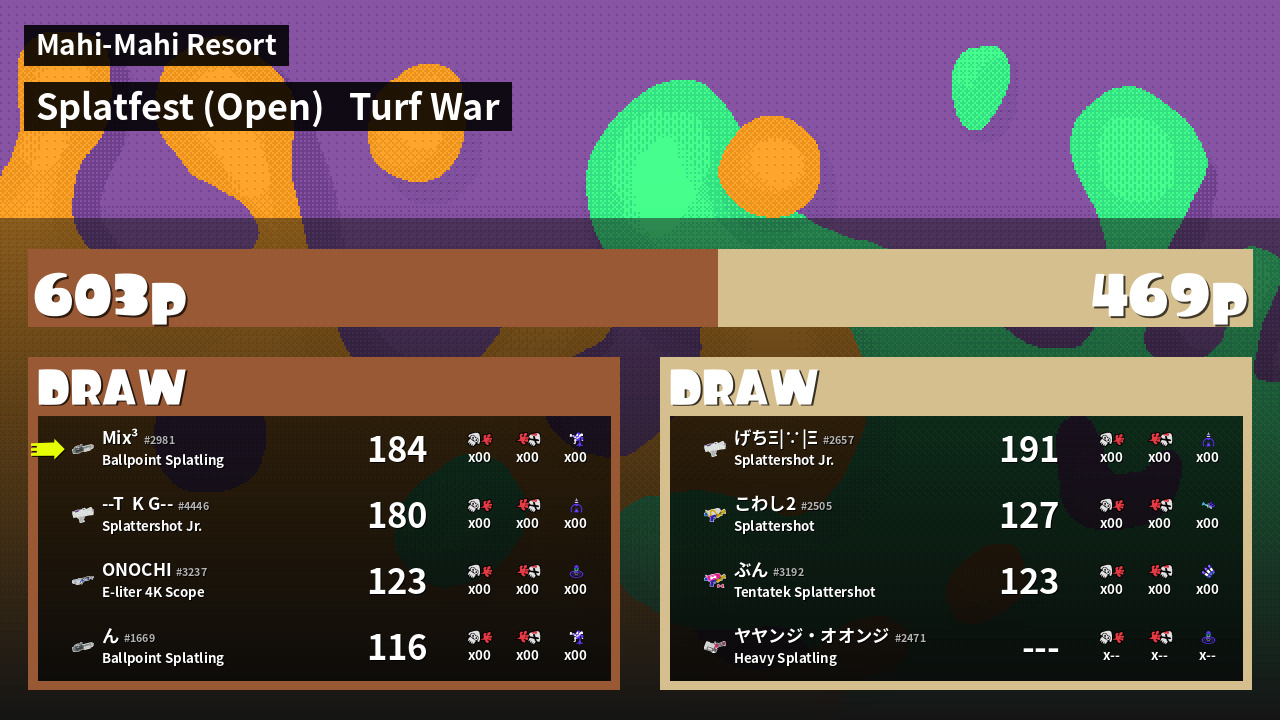 | Weapon | Ballpoint Splatling ( Fizzy Bomb / Inkjet) | ||