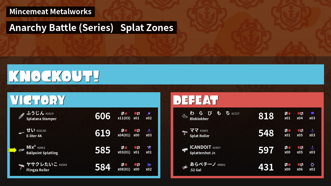 | Medals | #1 Splat Zone Inker #1 Popular Target #2 Splat Assister | ||