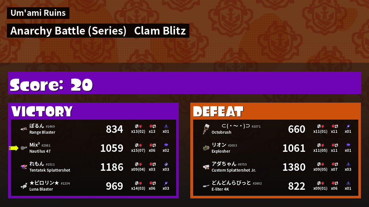 Name | Weapon | Inked | ![]() |