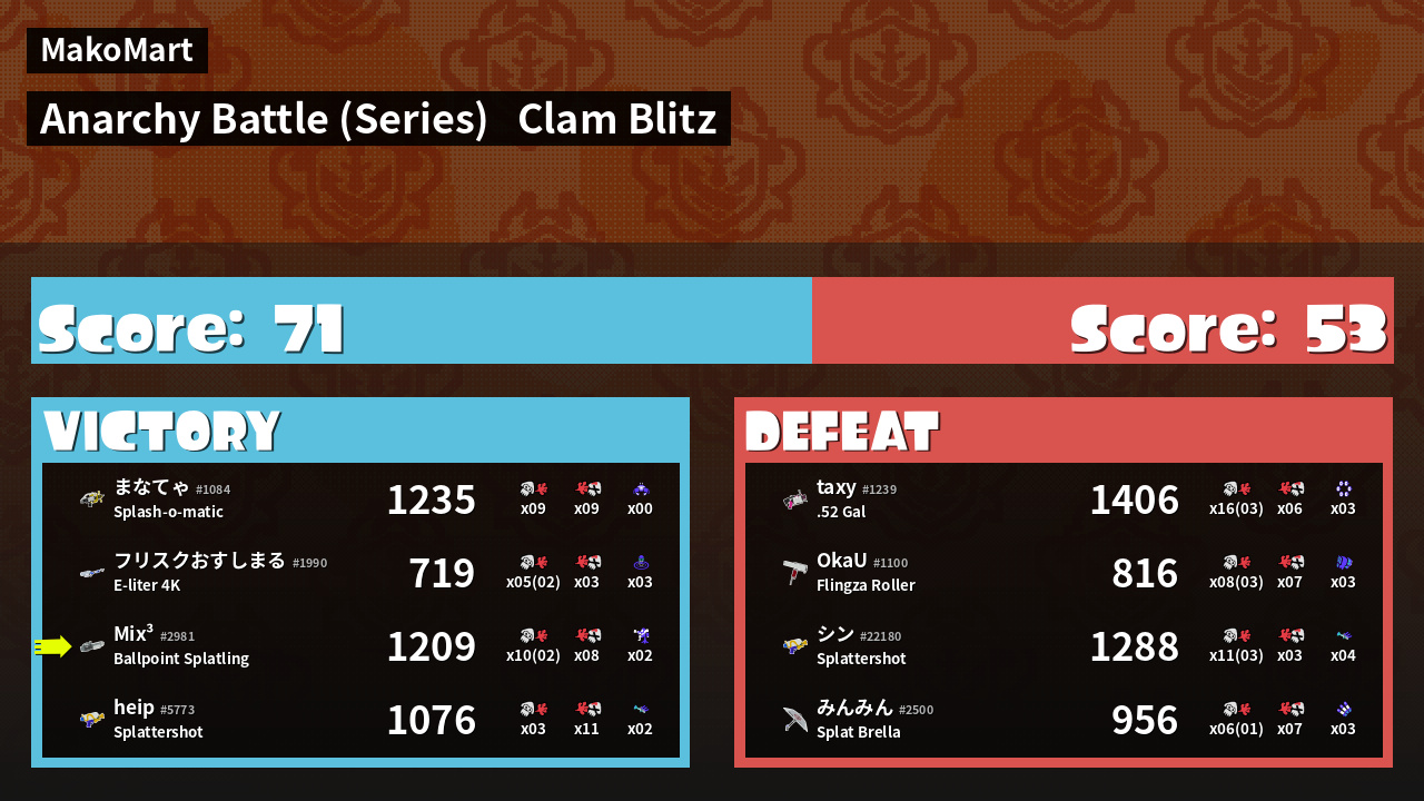 | Mode | Clam Blitz - Anarchy Battle (Series) | ||