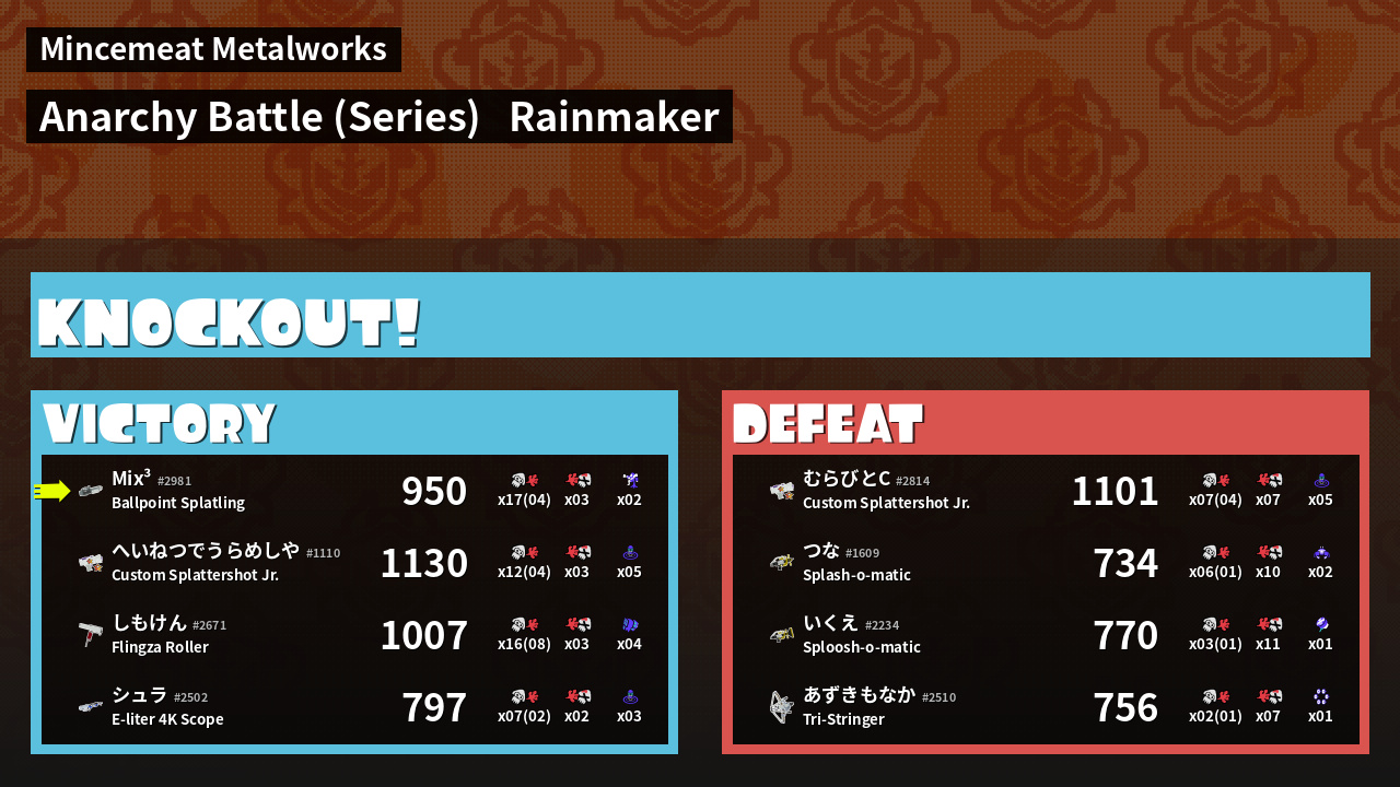 Name | Weapon | Inked | ![]() |