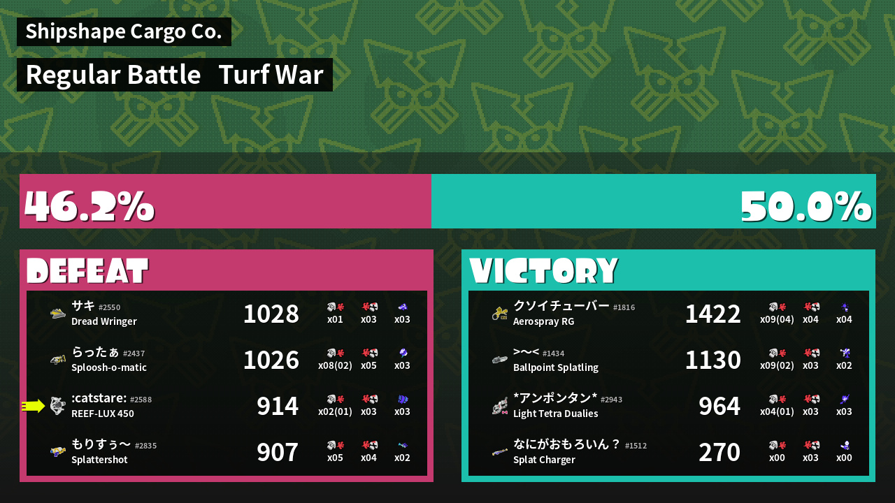 | Mode | Turf War - Regular Battle | ||
