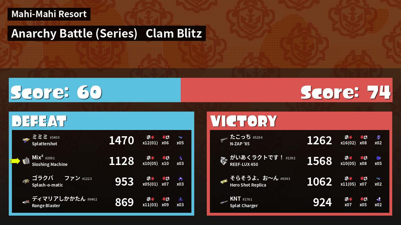 | Mode | Clam Blitz - Anarchy Battle (Series) | ||