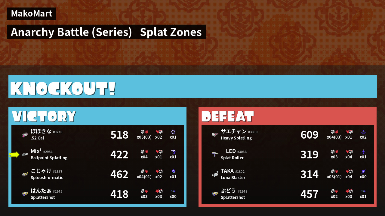 Name | Weapon | Inked | ![]() |