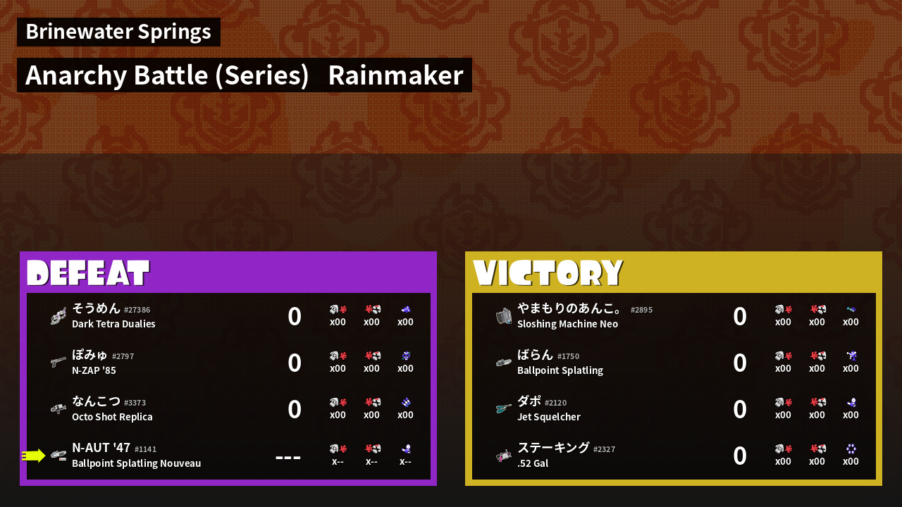 | Mode | Rainmaker - Anarchy Battle (Series) | ||