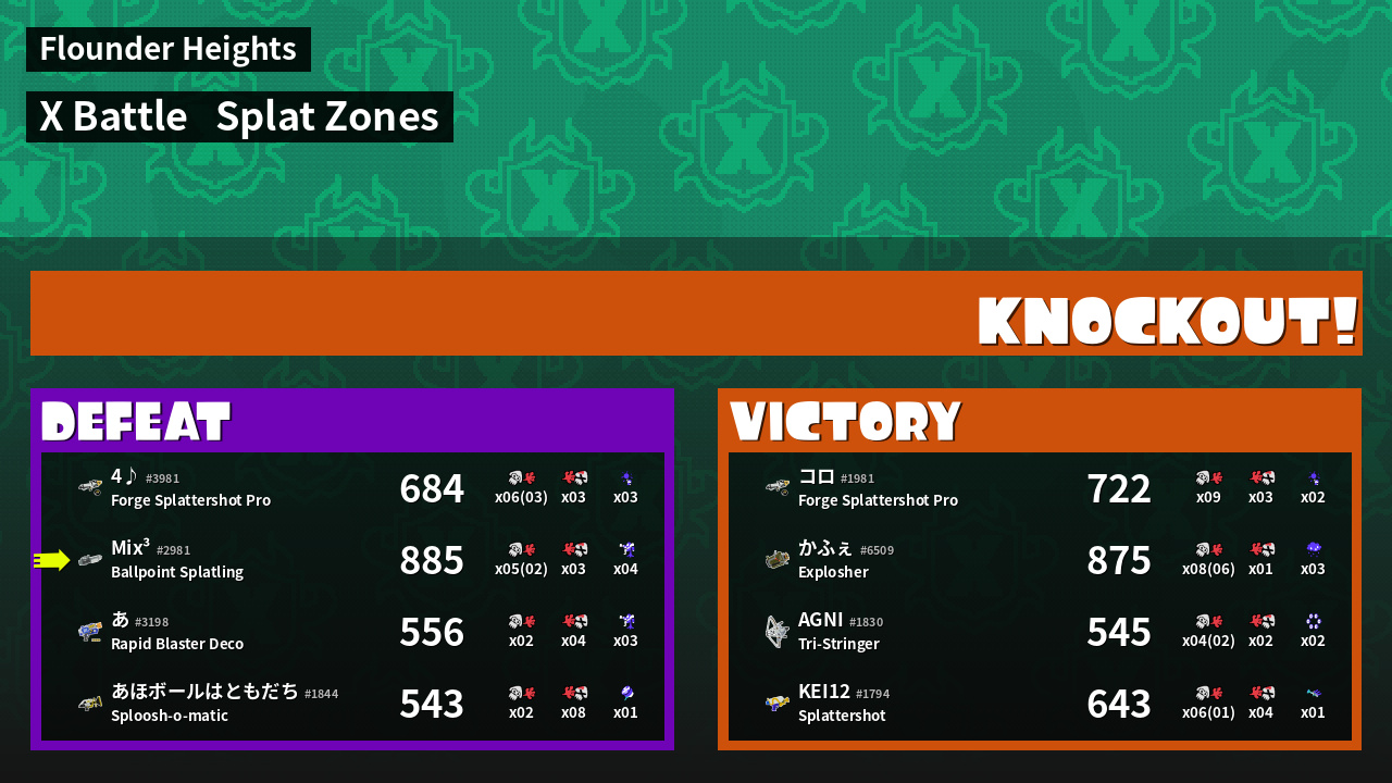 | Mode | Splat Zones - X Battle | ||