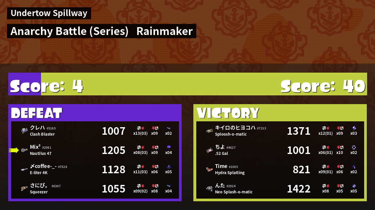 Name | Weapon | Inked | ![]() |