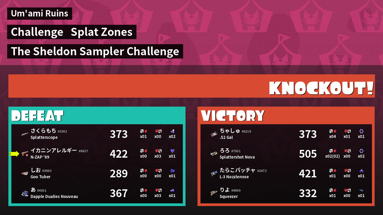 | Medals | #1 Splat Zone Inker #1 Turf Inker #1 Super Chump User | ||