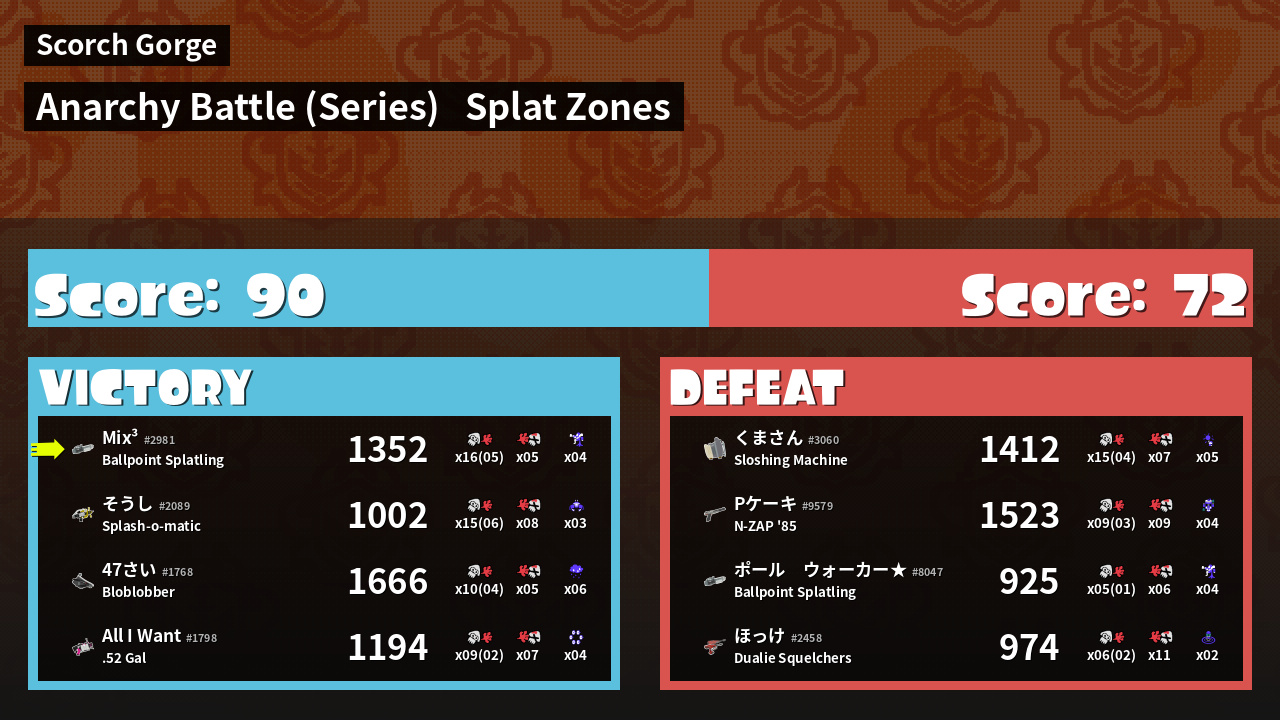 | Mode | Splat Zones - Anarchy Battle (Series) | ||