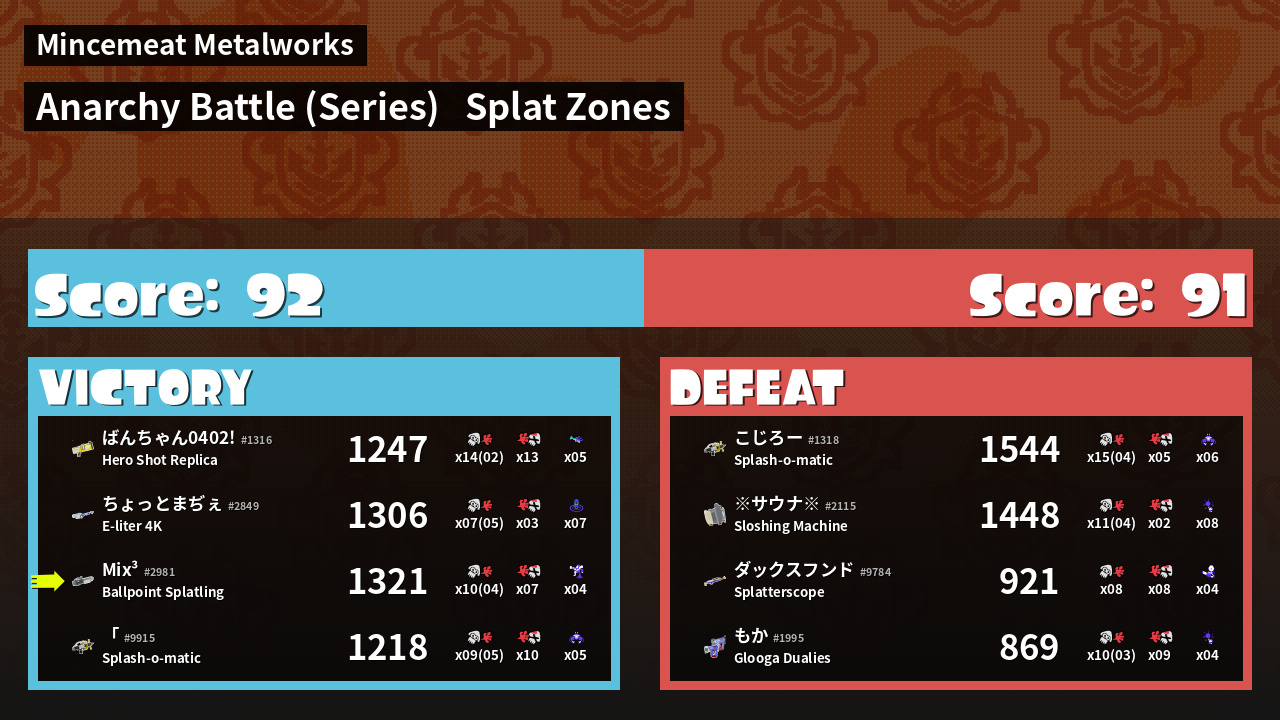 | Mode | Splat Zones - Anarchy Battle (Series) | ||