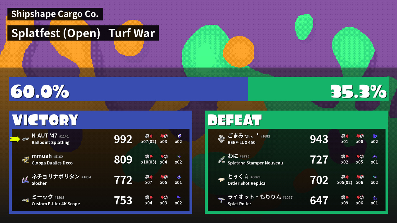 のりしお | 3,019 | 15 | 23 | 0.65 | 6 | ||