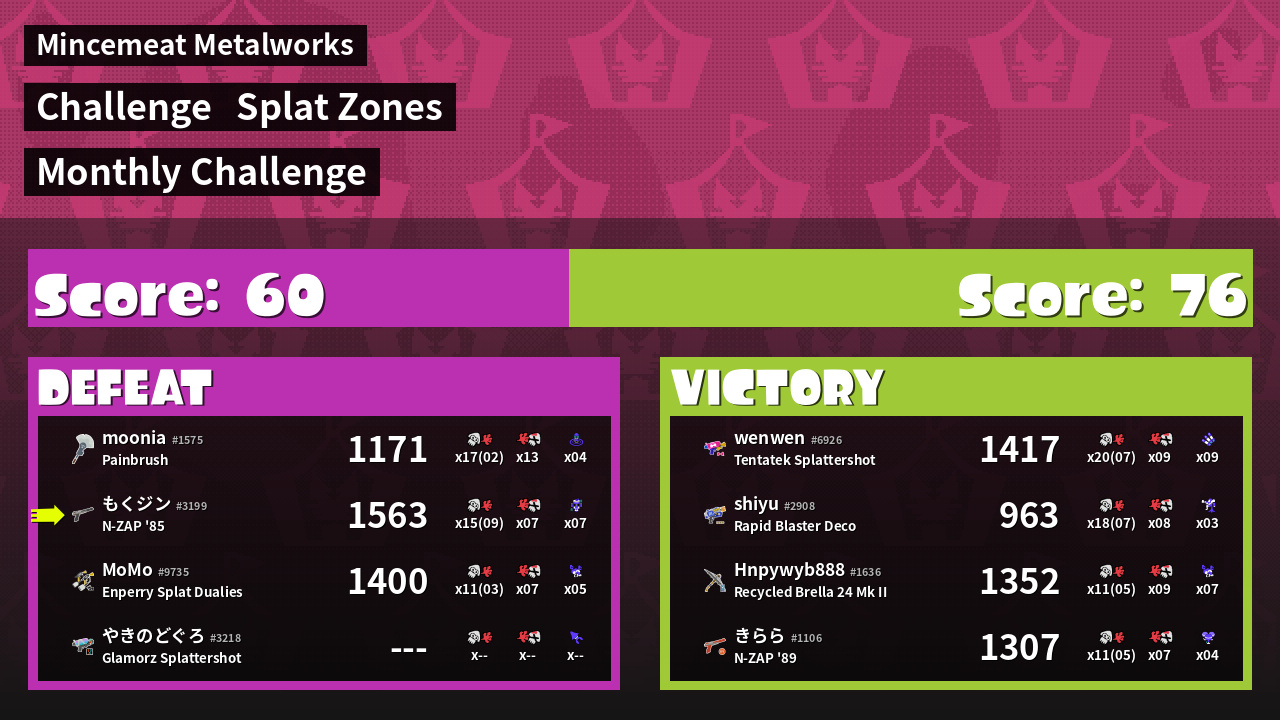 | Medals | #1 Splat Zone Inker #1 Turf Inker #1 Popular Target | ||