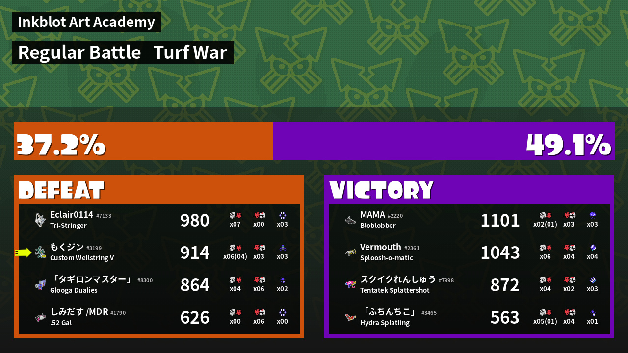 | Mode | Turf War - Regular Battle | ||
