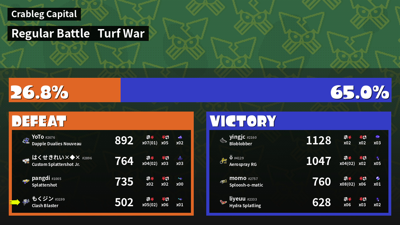 | Mode | Turf War - Regular Battle | ||