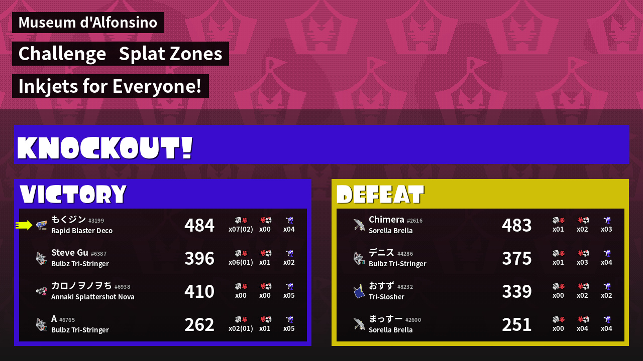 | Medals | #1 Overall Splatter #1 Splat Zone Inker #1 Splat Zone Guard | ||