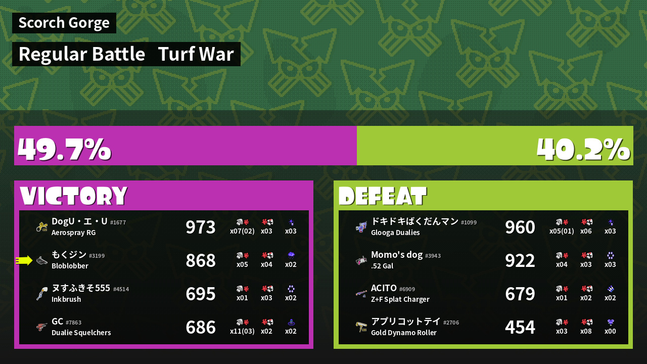 | Mode | Turf War - Regular Battle | ||
