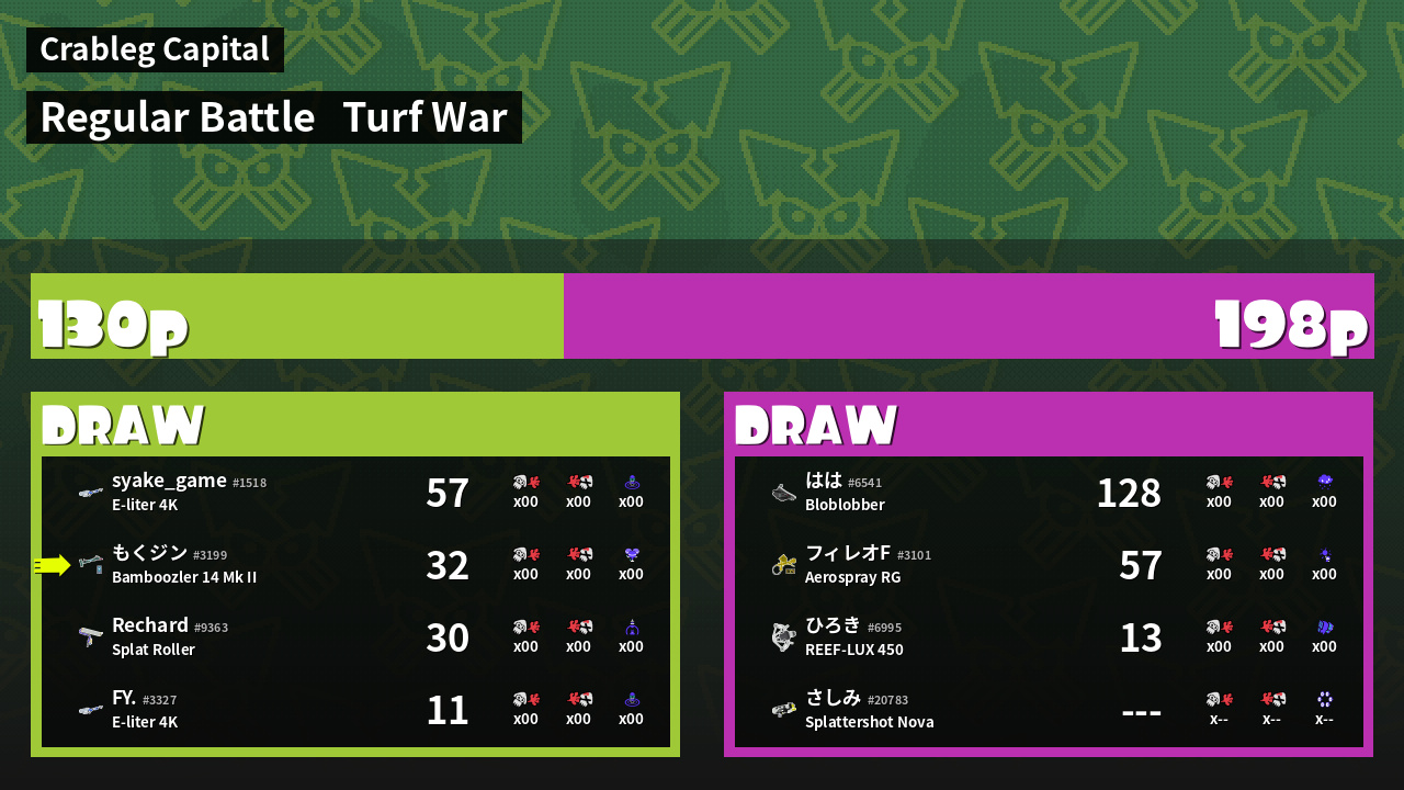 | Mode | Turf War - Regular Battle | ||
