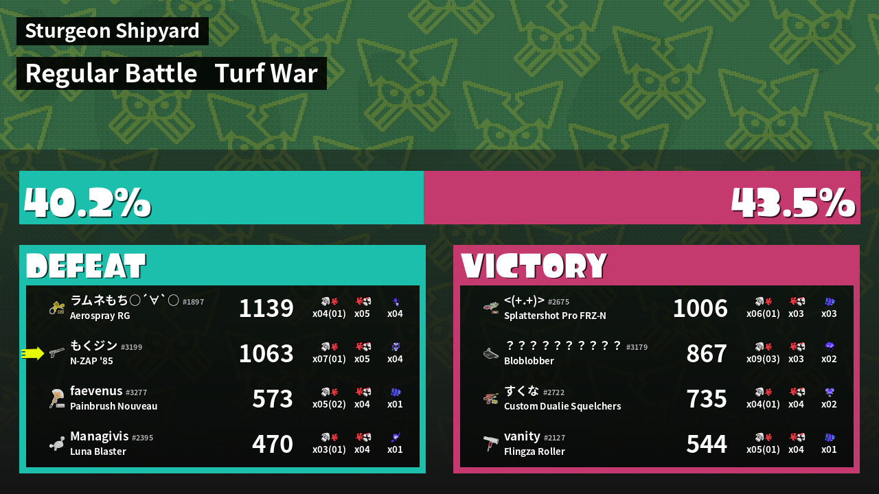 | Medals | #1 Overall Splatter #1 Popular Target #1 Home-Base Inker | ||