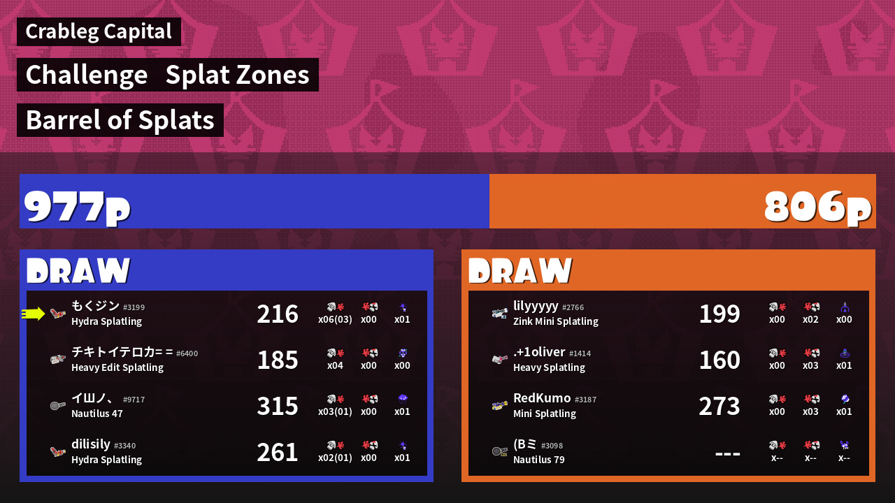 | Challenge | Barrel of Splats Muster as much firepower as you can<br />in this battle of the splatlings! | ||