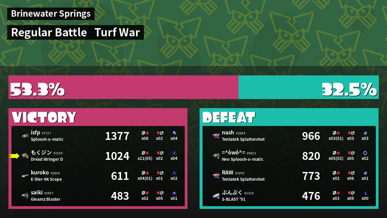 | Medals | #1 Overall Splatter #1 Popular Target #1 Splat Assister | ||