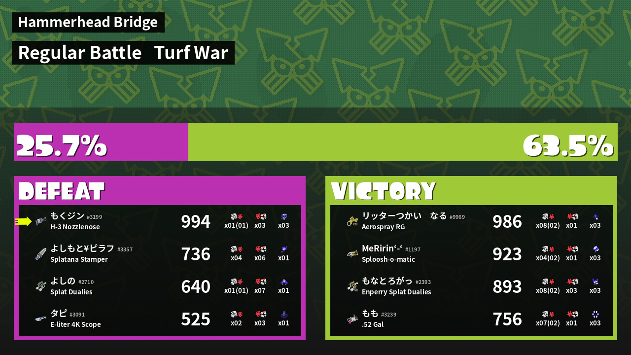 | Mode | Turf War - Regular Battle | ||